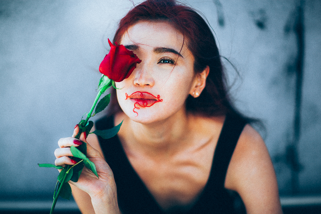Our second girl is Sandu. She is originally from Kazakhstan and lives in New York, her favorite flowers are roses. A rose is considered as a symbol of balance and an expression of inner power. Red roses in particular reflect beauty and perfection. They say that deep or dark red roses can reveal beauty in the unconscious mind.